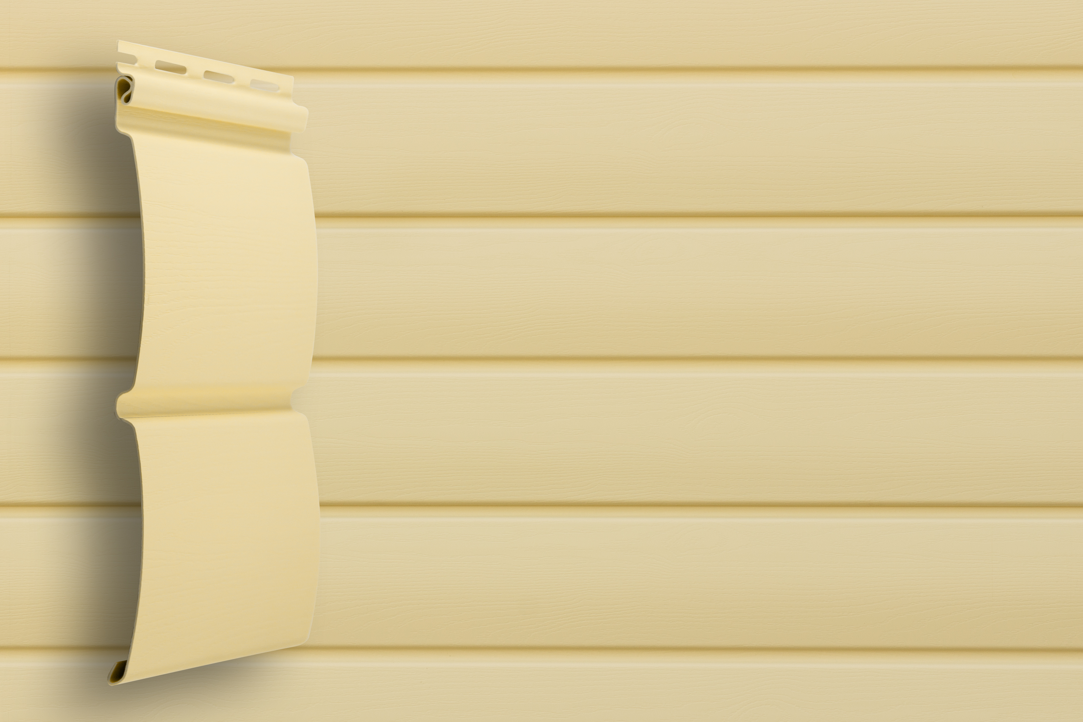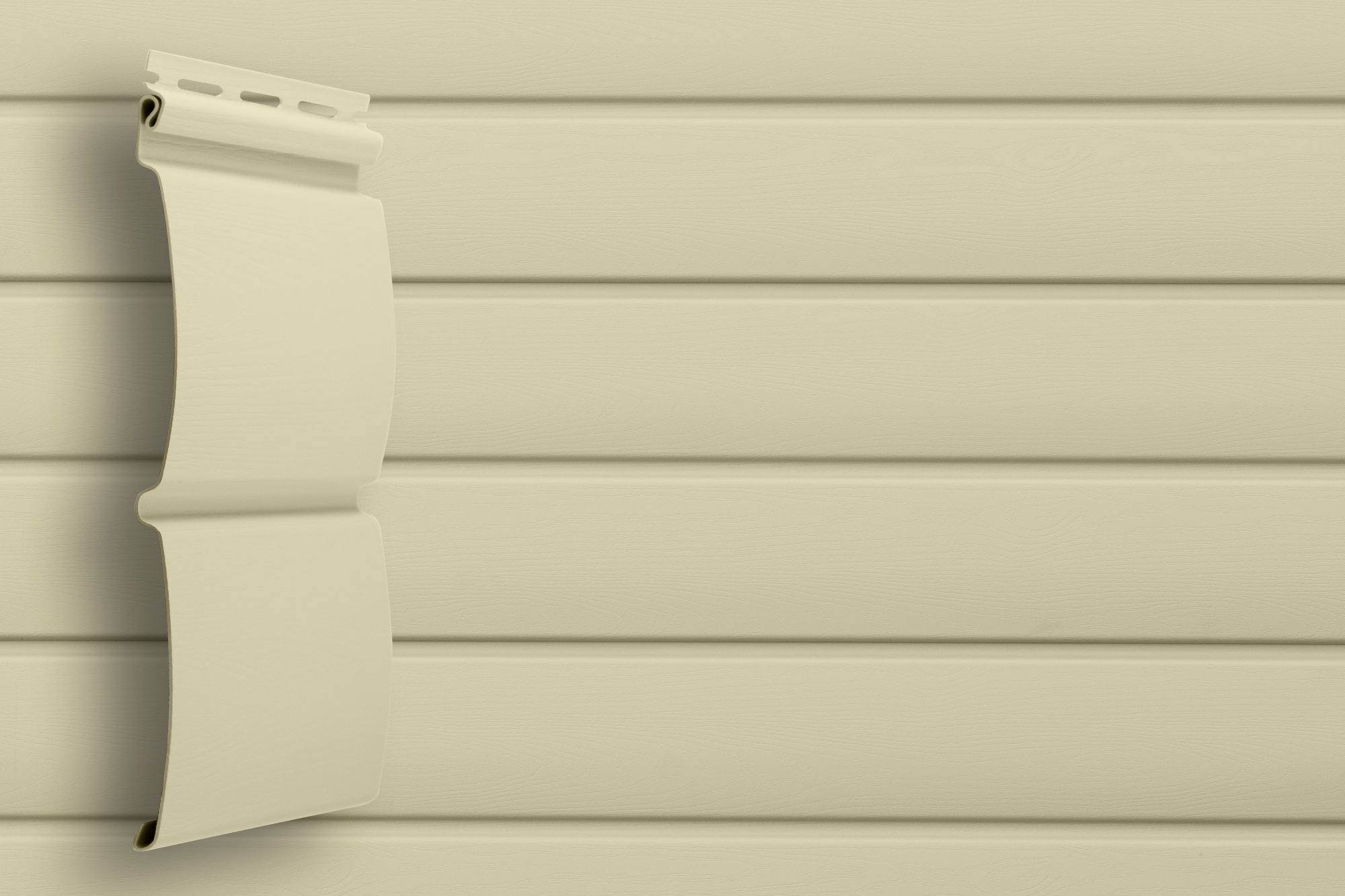 Геометрия панели (радиус ламели) сайдинга «Блок-хаус» D4,8 повторяет форму натурального бруса из ценной породы дерева — карельской сосны возрастом не менее 100 лет. Текстура поверхности со специальными «сучками» достоверно имитирует деревянный фасад.