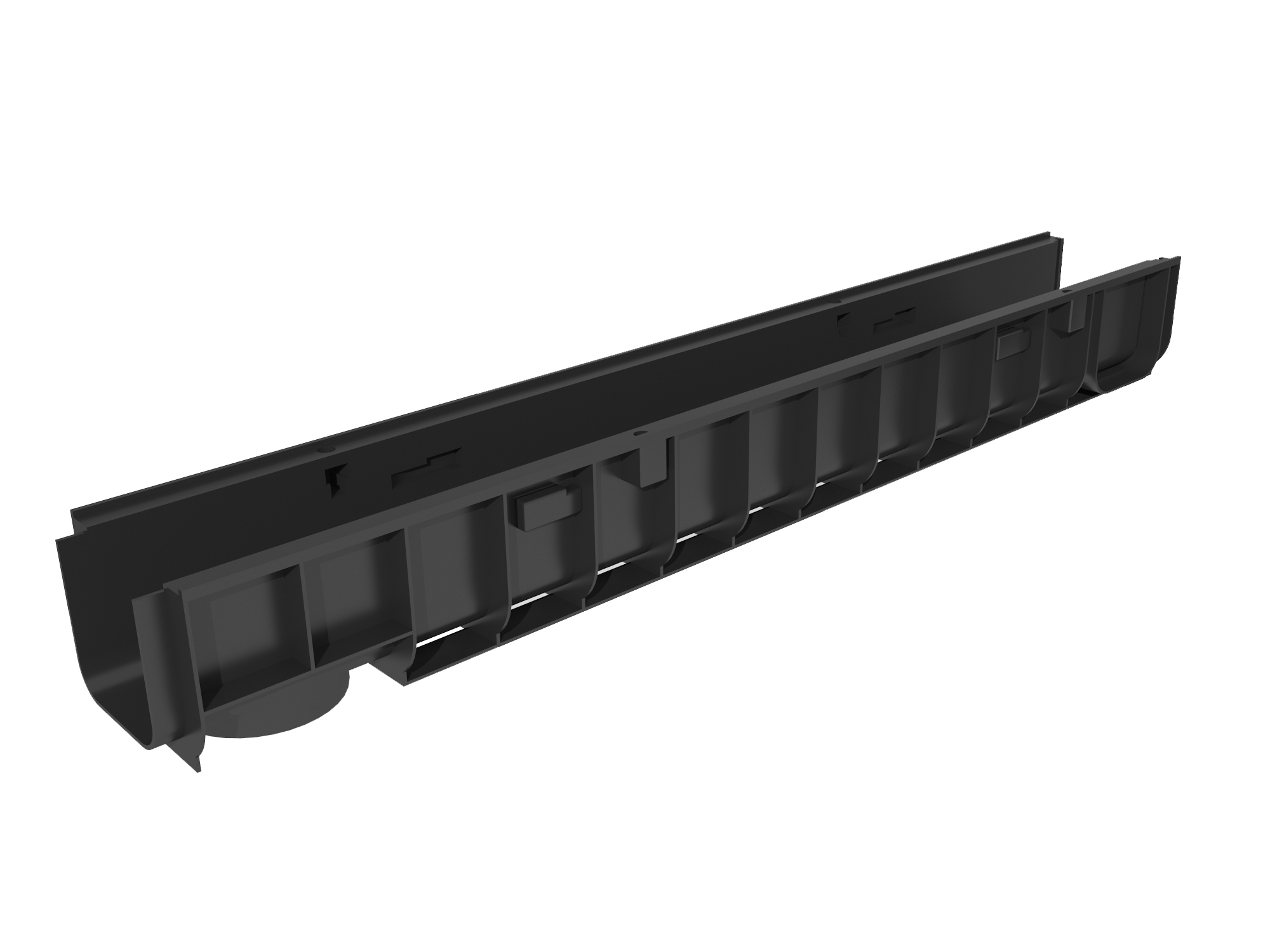 Пластиковый водоотводный лоток проходным сечением 100 мм и длиной 1 м предназначен для сбора и утилизации дождевой, снеговой, технической воды с тротуаров и автодорог, предприятий, автостоянок и автосервисов, с участков индивидуального жилищного строительства, придомовых территорий многоквартирных домов.