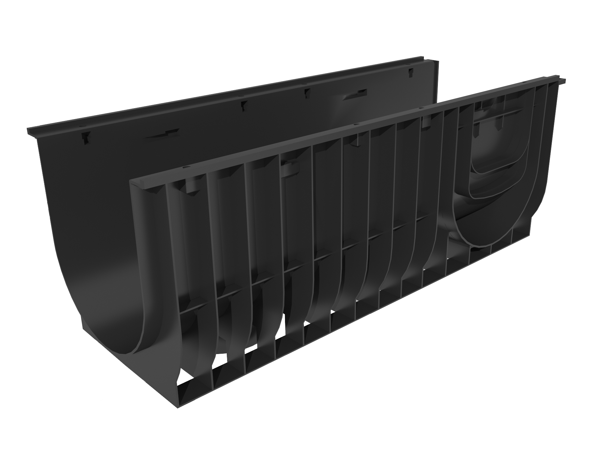 Лоток проходного сечения 300 мм пропускной способности 73,6 л изготавливается из прочного морозостойкого полипропилена. Рекомендован для применения в водоотводных системах серии Gidrolica® Standart или в дренажных коммуникациях свободной конструкции.